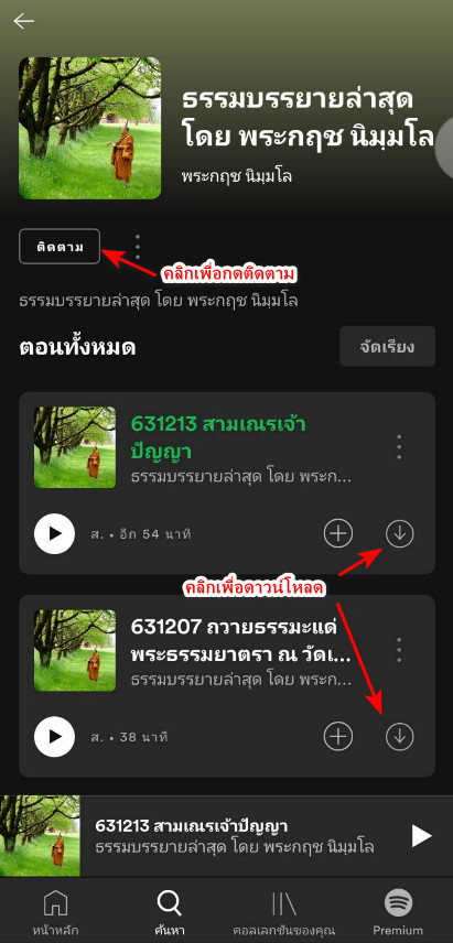 - ท่านสามารถกด “ติดตาม” เพื่อรับการแจ้งเตือนกรณีมีไฟล์ธรรมะใหม่เพิ่มเข้ามา